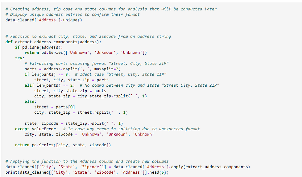 Cleaned and structured geographical sales data by splitting address columns into zip code, city, and state using Pandas and visualized using Matplotlib and Geopandas to guide targeted decisions on territory expansion, leveraging insights to prioritize high-performing areas and evaluate potential new territories for expansion plans, while ensuring proper resource allocation.